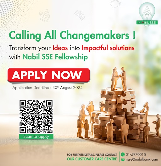 सामाजिक परिवर्तनका लागि नवीनतम सोच भएका १८ वर्षभन्दा माथिका नेपाली नागरिकले २०८१ साल भदौ १४ गतेसम्म आवेदन दिन सक्नेछन् । बैंकले कृषि, पर्यटन, ऊर्जा, वातावरण संरक्षण, र सूचना प्रविधि लगायत कुनै पनि क्षेत्रमा नवीनतम सोच भएका र उद्यम गर्न चाहिने सीप तथा तालिमको खोजीमा रहेका उद्यमीहरुका लागि निशुल्क तालिमको लागि आवेदन खुला गरेको हो । इच्छुक व्यक्तिहरूले www.nabilbank.com मा उपलब्ध फारम भरेर वा क्युआर कोड स्क्यान गरेर आवेदन दिन सक्ने बैंकले जनाएको छ । यो कार्यक्रम बैंकको संस्थागत सामाजिक उत्तरदायित्वअन्तर्गत सञ्चालन भइरहेको छ ।