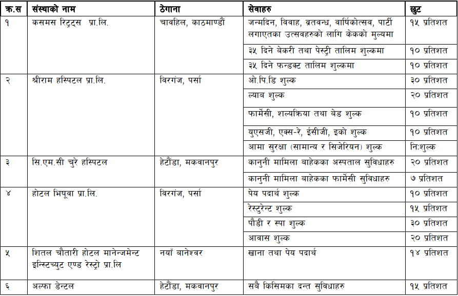 महालक्ष्मी विकास बैंकको ग्राहकलाई विभिन्न संस्थाका सेवाहरुमा विशेष छुट