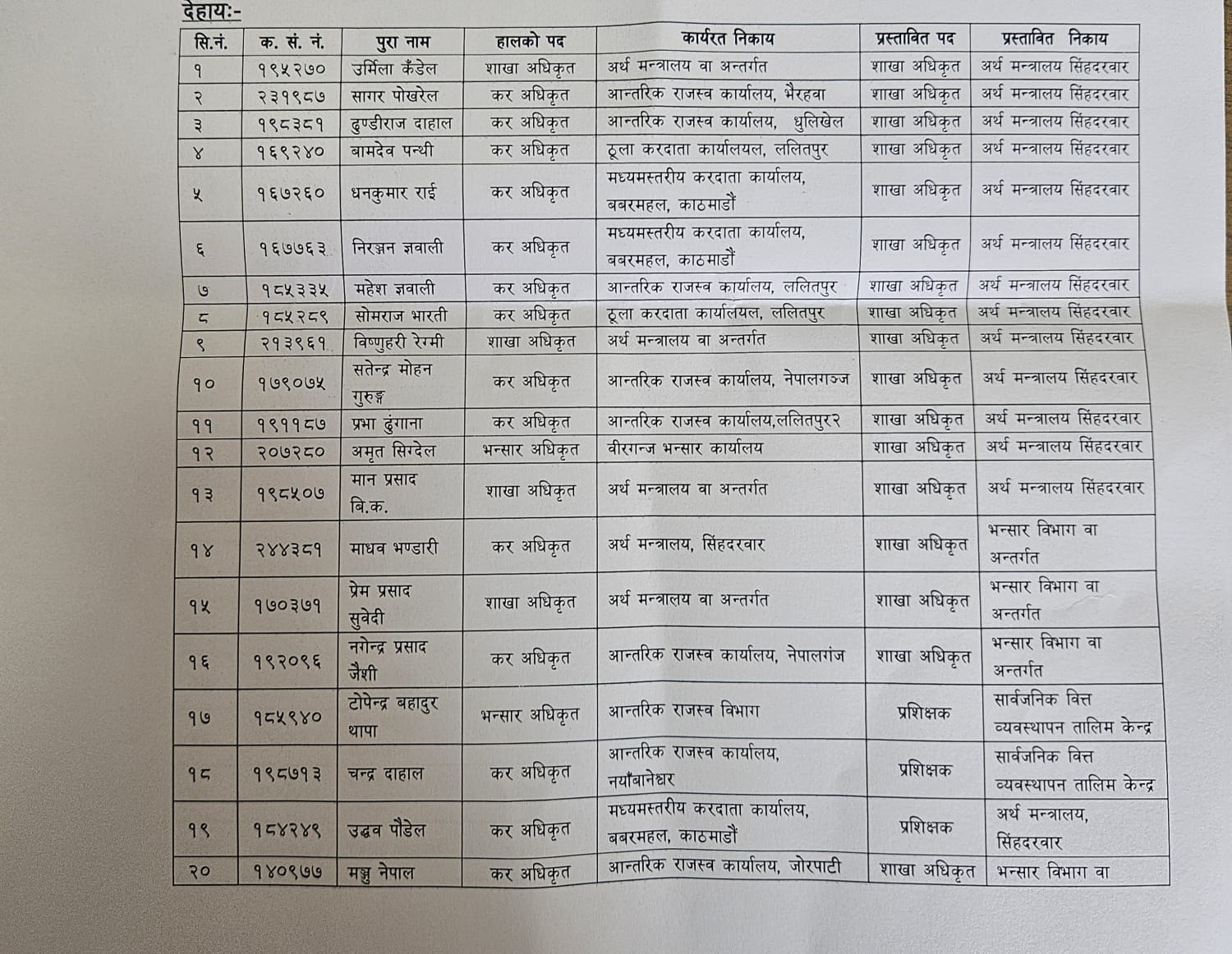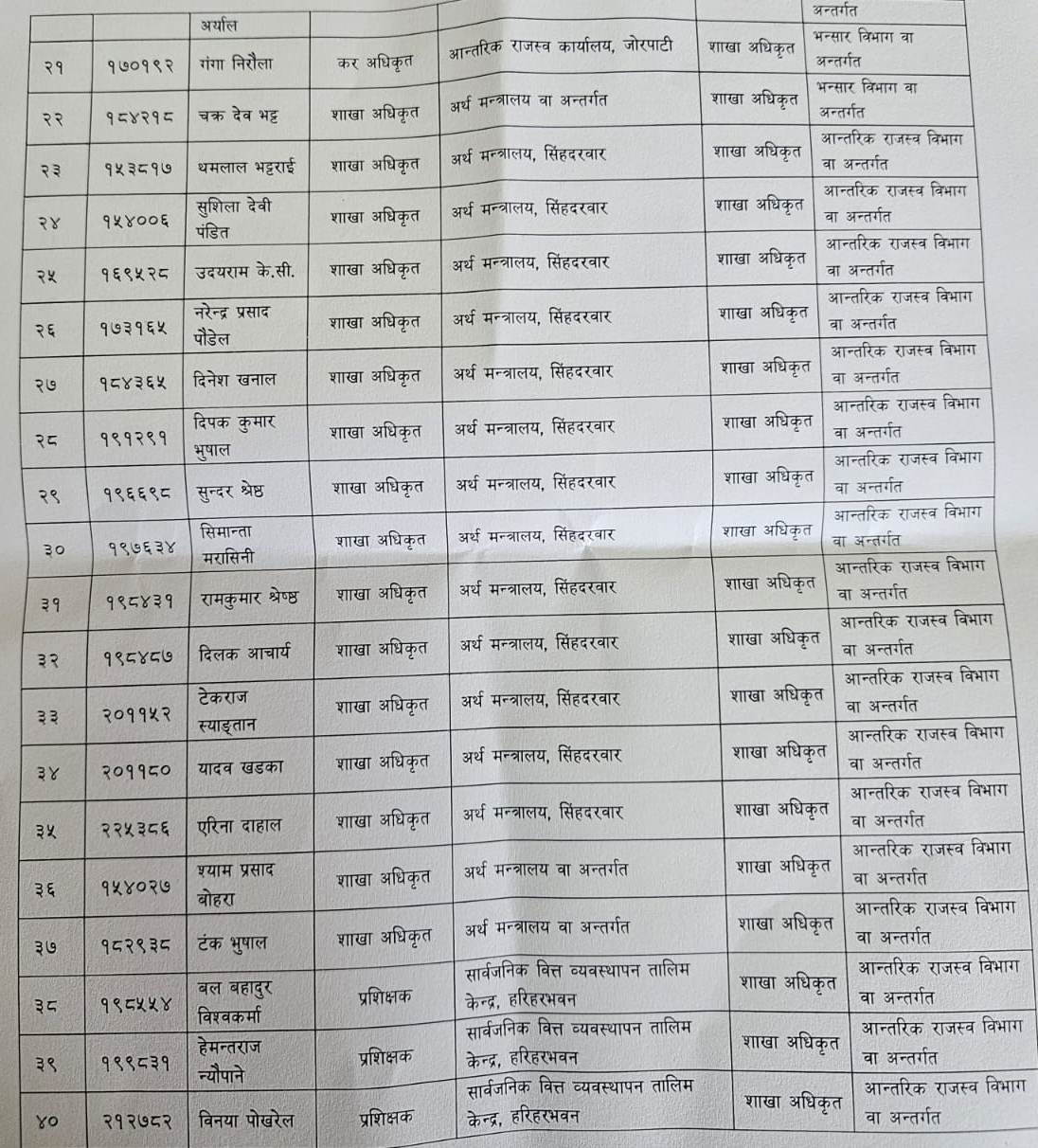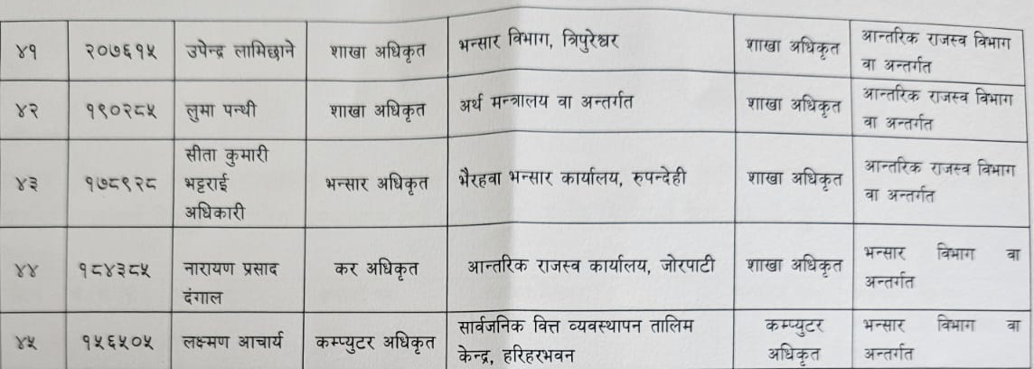 एकैपटक अर्थ मन्त्रालयका ४५ जना अधिकृतको सरुवा