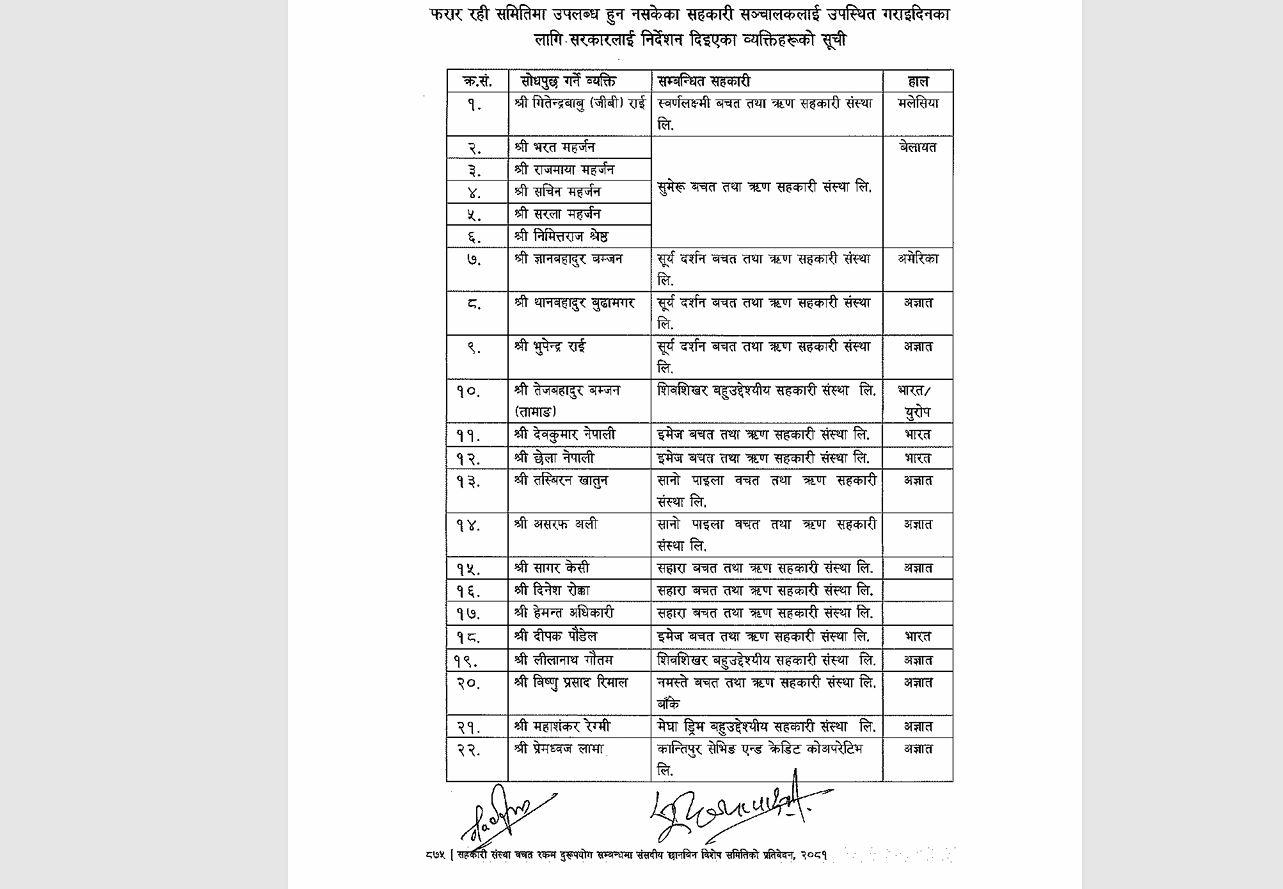 सहकारी प्रकरणमा फरार २९ व्यक्ति