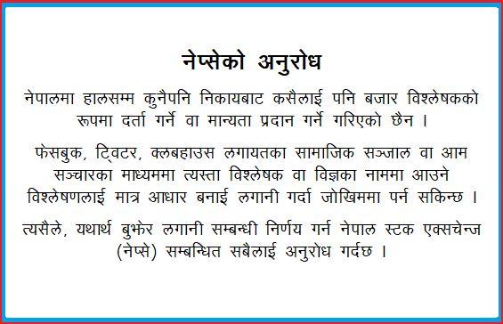 नेप्सेले हालसम्म नेपालमा कुनै पनि निकायले बजार विश्लेषकको रूपमा कसैलाई दर्ता गर्ने वा मान्यता प्रदान नगरेको भन्दै बुझेर मात्रै लगानी गर्न आग्रह गरेको हो ।