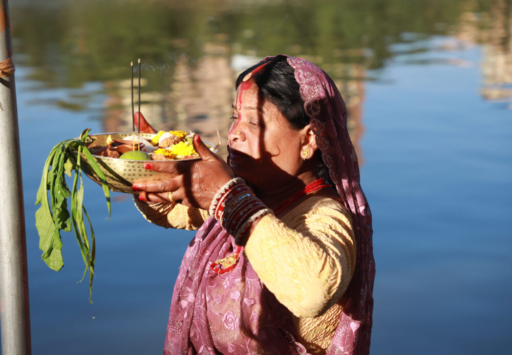 काठमाडौं । बिहीबार साँझ देशका विभिन्न ठाउँका जलाशयमा छठ पर्वको मुख्य दिन ब्रतालुले अस्ताउँदो सूर्यको पूजा आराधना गरी अर्घ दिएका छन् ।