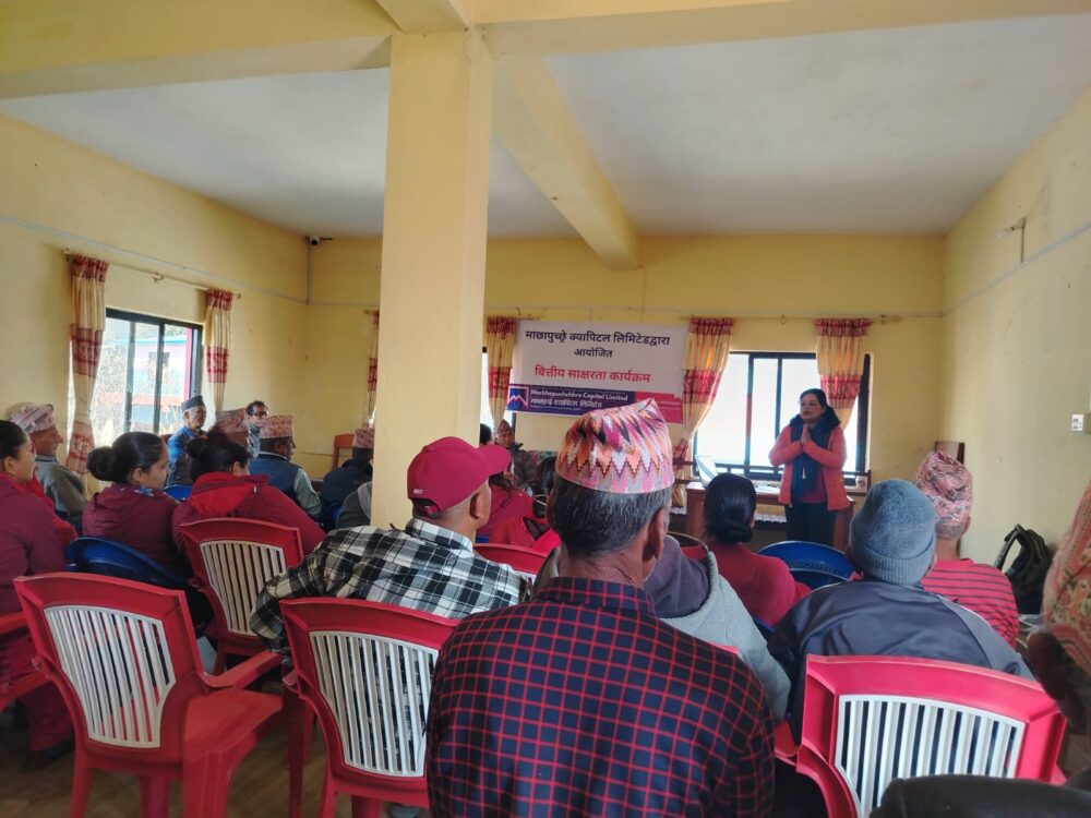 काठमाडौं । माछापुच्छ्रे बैंक, माछापुच्छ्रे क्यापिटल लिमिटेड तथा माछापुच्छ्रे गाउँपालिका वडा नंः ३ र ४ को संयुक्त आयोजनामा हाइड्रो प्रभावित क्षेत्र तथा गाउँहरुमा माघ २१ देखि २४ गतेसम्म सेयरसम्बन्धी सचेतना तथा वित्तीय साक्षरता कार्यक्रम सम्पन्न गरेको छ ।
