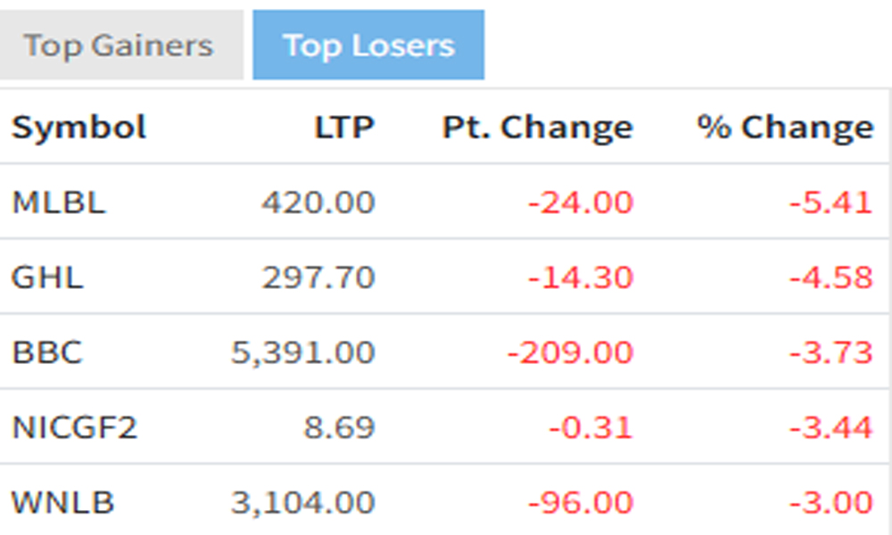 त्यस्तै आज विशाल बजार कम्पनीको सेयर मूल्य २०९ रुपैयाँले घटेर ५ हजार २९१ रुपैयाँ पुगेको छ । यो अघिल्लो दिनको भन्दा ३.७३ प्रतिशतले कम हो । आज एनआईसी एशिया ग्रोथ फण्डको सेयर मूल्य पनि ३.४४ प्रतिशत अर्थात् ०.३१ रुपैयाँले घटेर ८ रुपैयाँ ६९ पैसा पुगेको छ । आज विन नेपाल लघुवित्तको सेयर मूल्य ९६ रुपैयाँले घटेर २ हजार १०४ रुपैयाँ पुगेको छ । यो अघिल्लो दिनको भन्दा ३ प्रतिशतले कम हो ।