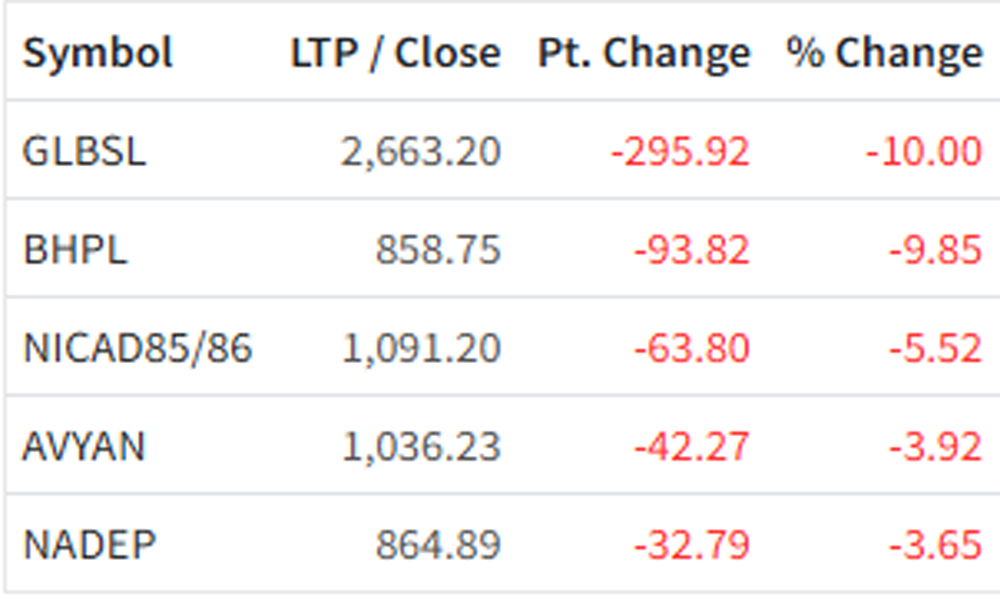 आजको कारोबार बन्द हुँदा यो कम्पनीको सेयर मूल्य २९५ रुपैयाँ ९२ पैसाले घटेर २ हजार ६६३ रुपैयाँ २० पैसा पुगेको छ । यो अघिल्लो दिनको भन्दा १० प्रतिशतले कम हो । त्यस्तै आज बराही हाइड्रोपवारको सेयर मूल्य पनि ९३ रुपैयाँ ८२ पैसाले घटेर ८५८ रुपैयाँ ७५ पैसा पुगेको छ । जुन अघिल्लो दिनको भन्दा ९.८५ प्रतिशतले कम हो ।