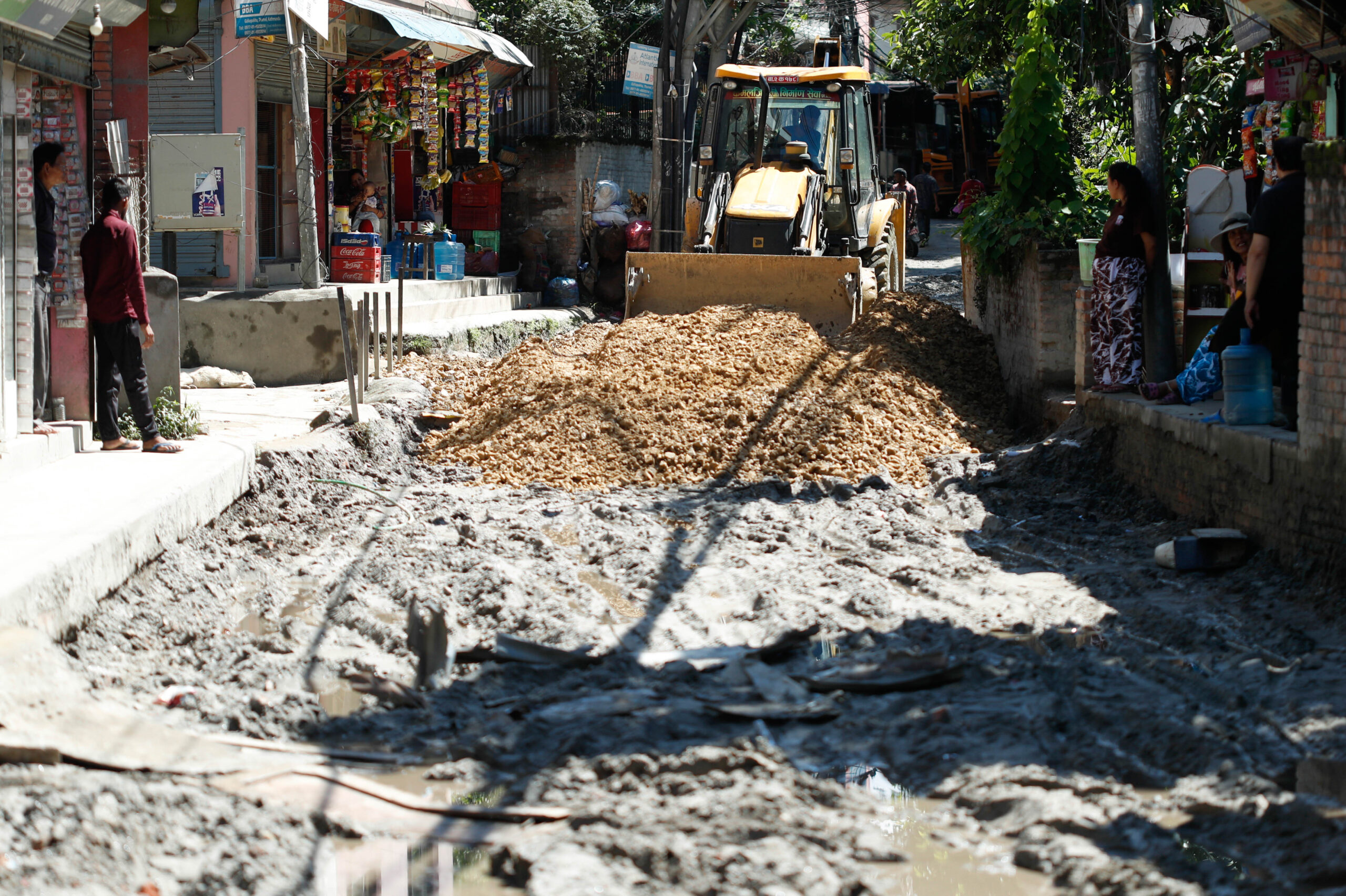 कामपा वडा नं १६ निर्मल लामा मार्गको अमृत स्कुल अगाडिको सडक वर्षौं बित्दा पनि निर्माण सम्पन्न हुन सकेको छैन, सडक हिलाम्मे भएपछि स्थानीयहरू मिली वडा कार्यालयमा दबाब दिएपछि भने अहिले ग्रबेलिङको काम सुरु गरिएको छ ।