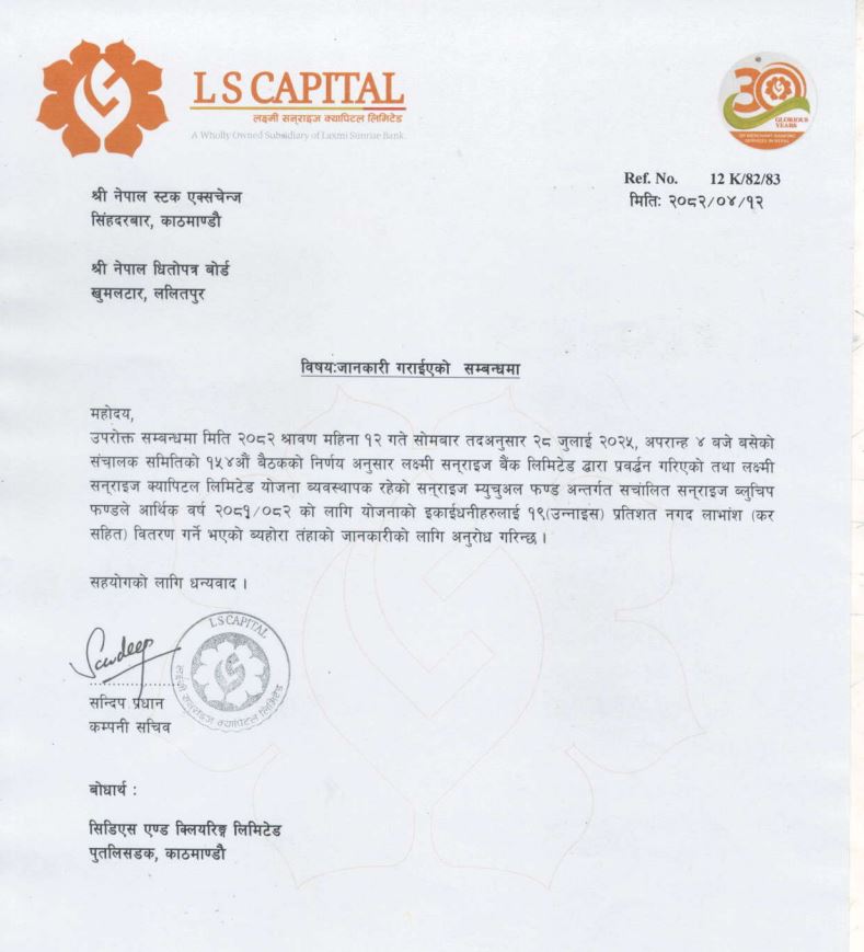 सोमबार बसेको कम्पनी सञ्चालक समितिको बैठकले उक्त घोषणा गरेको जनाएको छ ।