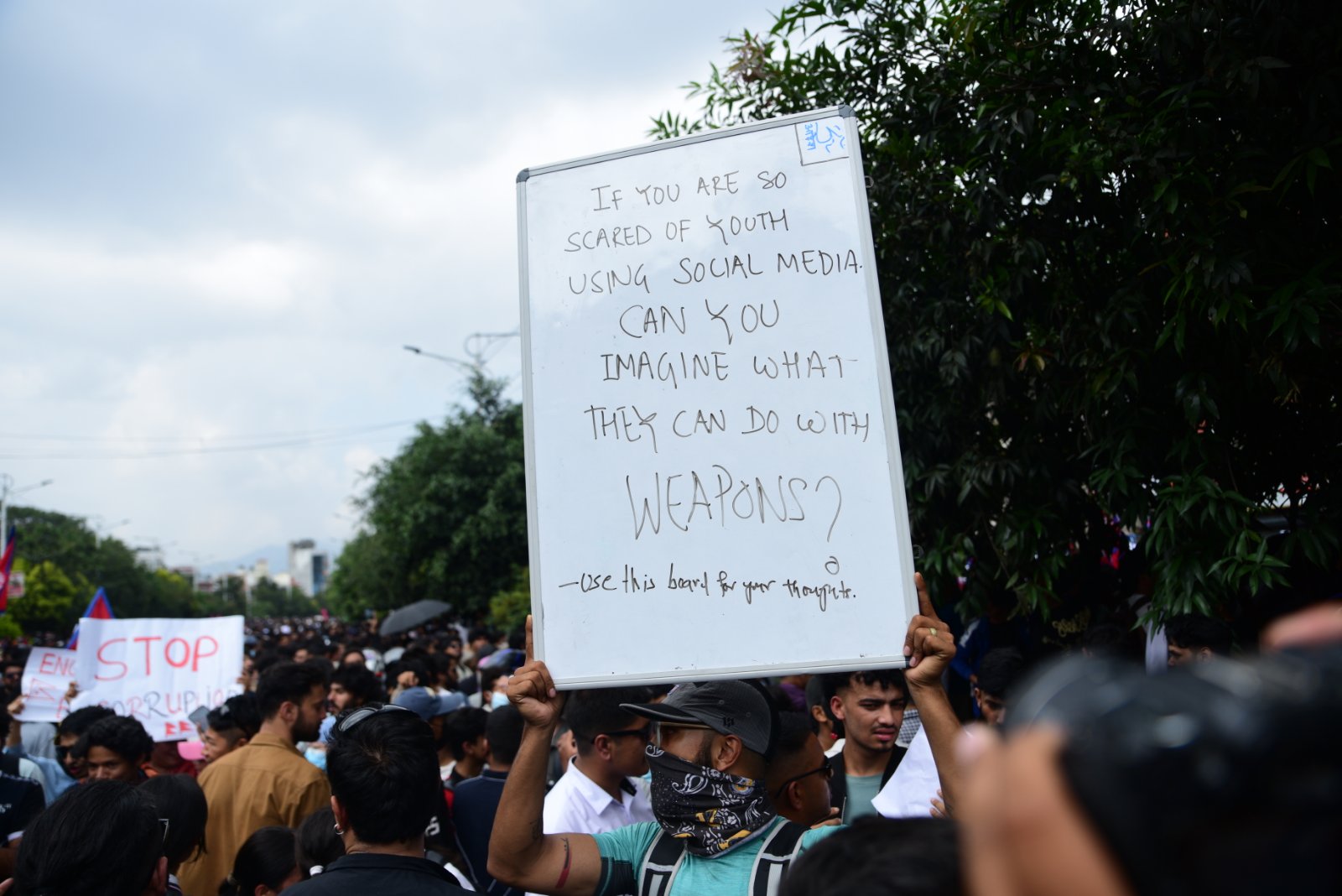 काठमाडौं । जेनजी पुस्ताले सरकारको बेथिति, भ्रष्टाचार र सामाजिक सञ्जालमाथि लगाएको प्रतिबन्धको विरोधमा गरेको प्रदर्शनी बानेश्वर स्थित ससद् भवन अगाडि पुगेको छ ।