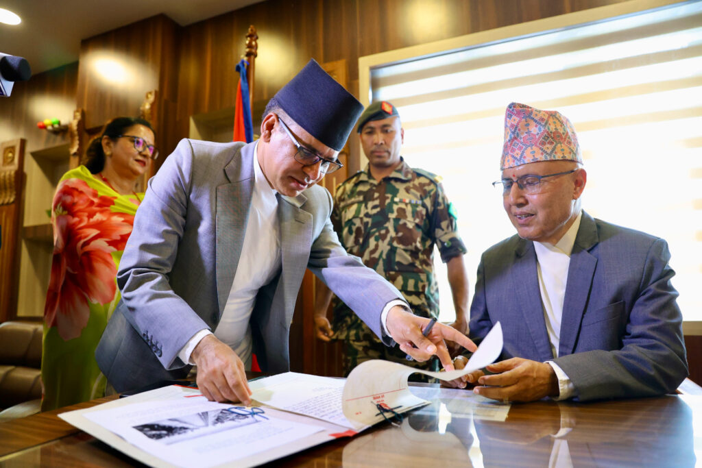 काठमाडौं । नवनियुक्त अर्थमन्त्री रामेश्वर खनालले पदभार ग्रहण गरेका छन् । सोमबार खनालले पदभार ग्रहण गरेका हुन् । पदभार ग्रहण गर्दै मन्त्री खनालले आफूलाई माननीय नभन्न आग्रह गरे ।