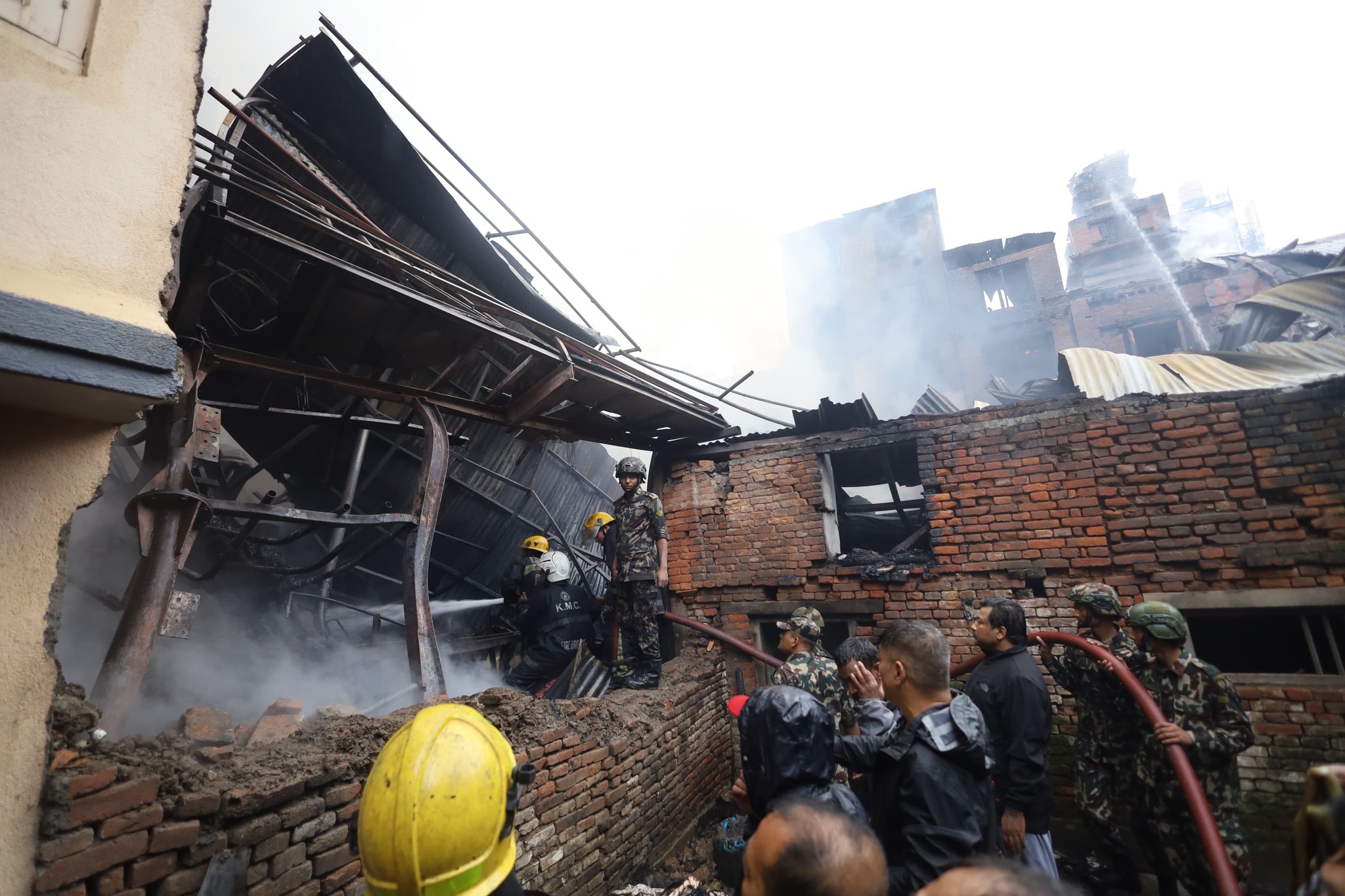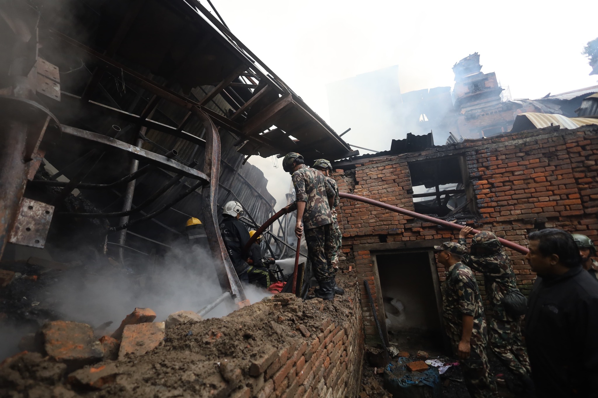 उक्त स्थानमा बिहान करिब ४ बजेबाट लागेको आगो अझै पनि निभाउन सकिएको छैन । अहिले पनि आगो निभाउने क्रम जारी रहेको जिल्ला प्रहरी परिसर काठमाडौंले जनाएको छ ।