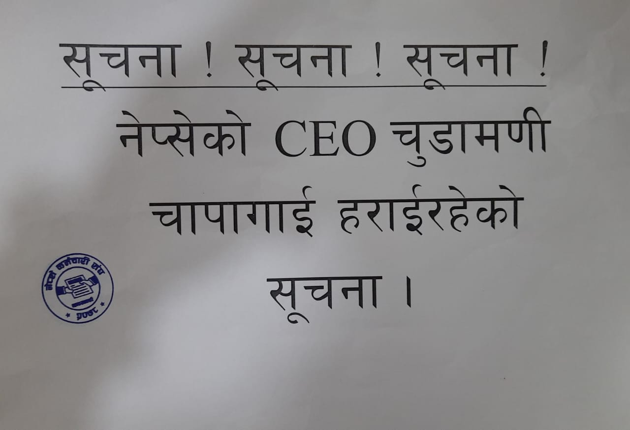 नेप्सेका कर्मचारी अध्यक्ष हेमन्त बस्याल र प्रमुख कार्यकारी अधिकृत (सीईओ) चुडामणी चापागाईको राजीनामा मागेका छन् । साथै नेप्सेका कर्मचारीले २३ दिनदेखि सीईओ सम्पर्क बिहीन भएको भन्दै खोजिदिन समेत आग्रह गरेका छन् । कर्मचारीले आन्दोलन गरेको भएपनि सेवा भने सूचारु राखेका छन् ।