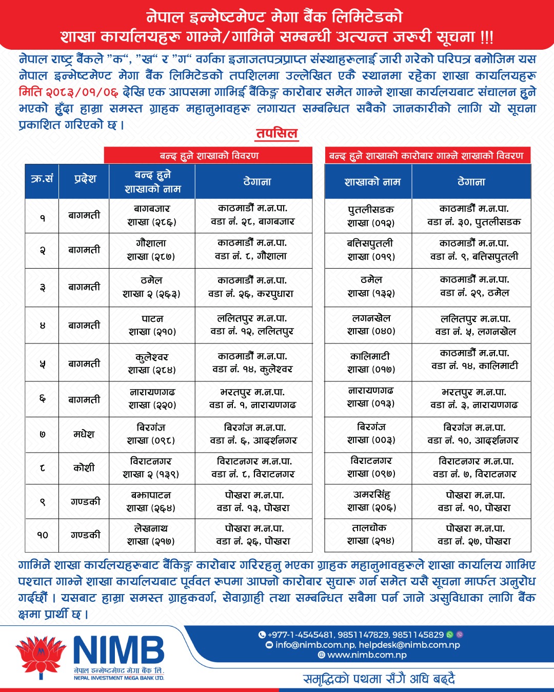 आज बैंक तथा वित्तीय संस्थाहरूले सीमित सेवा सञ्चालन गरिरहेका छन्।
