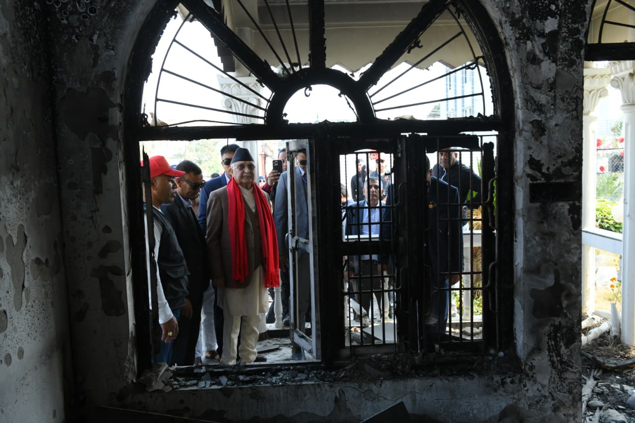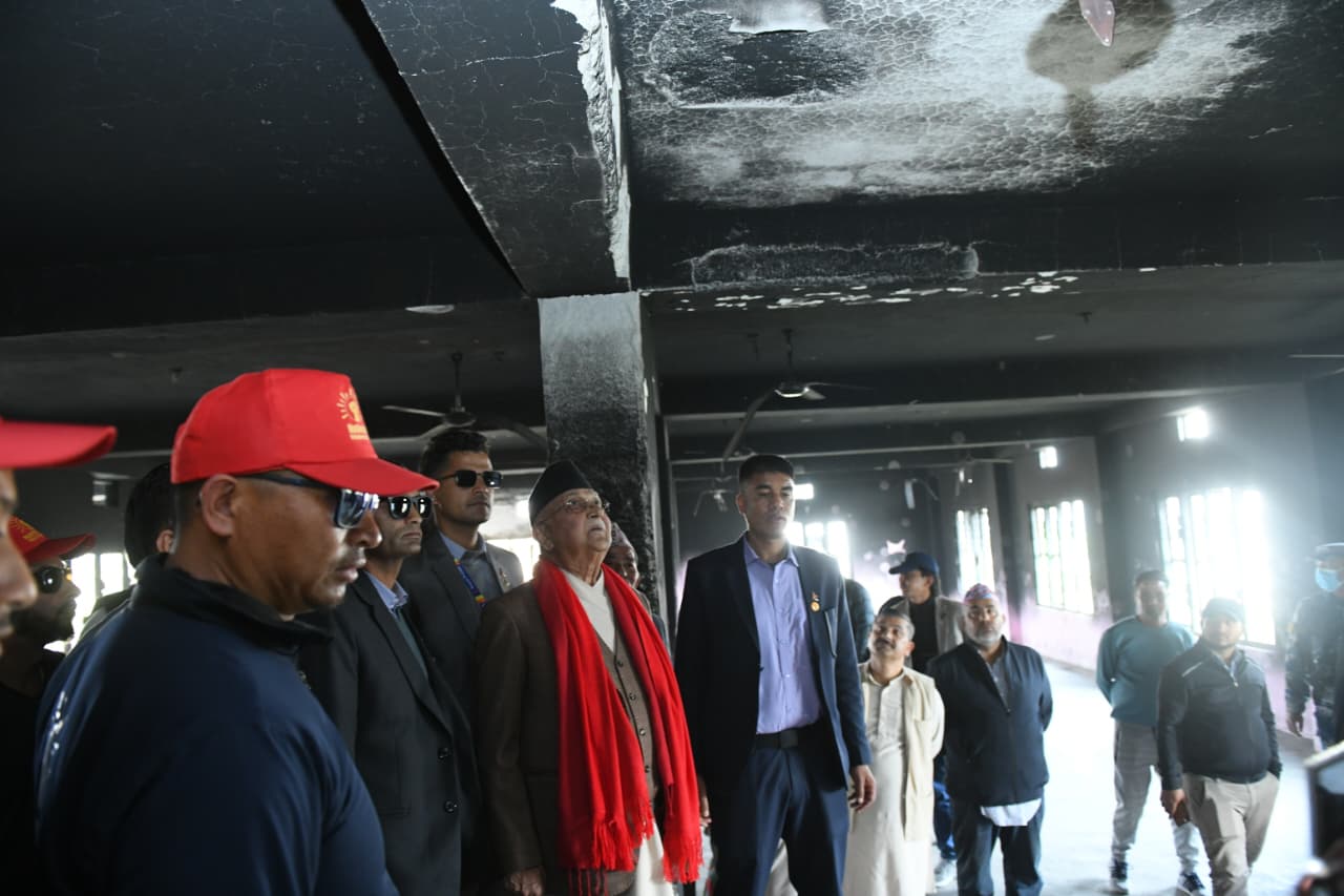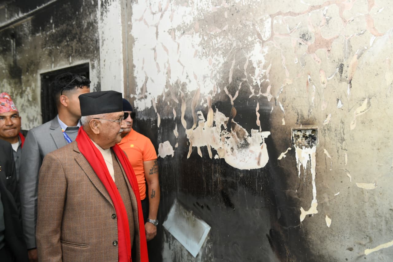 जेनजी आन्दोलनमा जलाइएको आफ्नो निर्वाचन क्षेत्रमा आउँदा बस्ने आवासको अध्यक्ष ओलीले अवलोकन गरे । ‘निजी तथा सरकारी सम्पत्तिलाई तोड्फोड, आगजनी गर्नेलाई कार्वाही गर्ने समय आउँछ’, उनले भने । अध्यक्ष ओलीले नगर कमिटी पार्टी कार्यालयको अबलोकन गरे ।