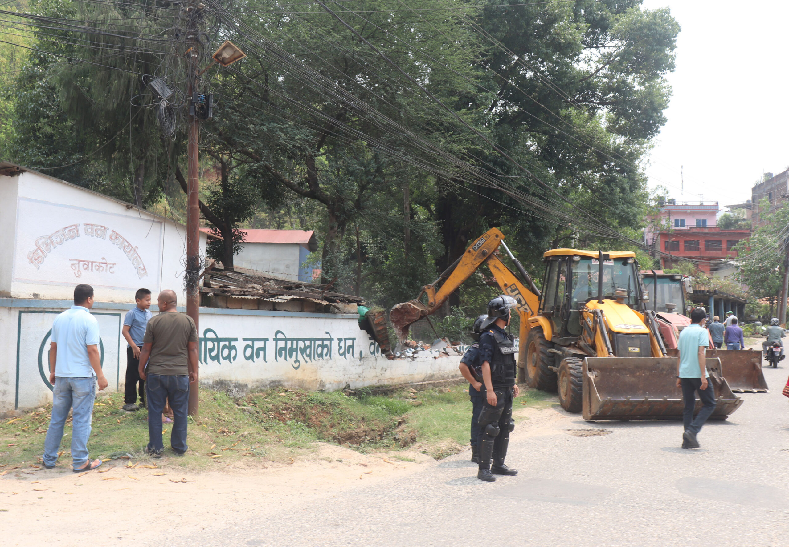 नुवाकोटमा अतिक्रमित संरचनामा चल्यो डोजर