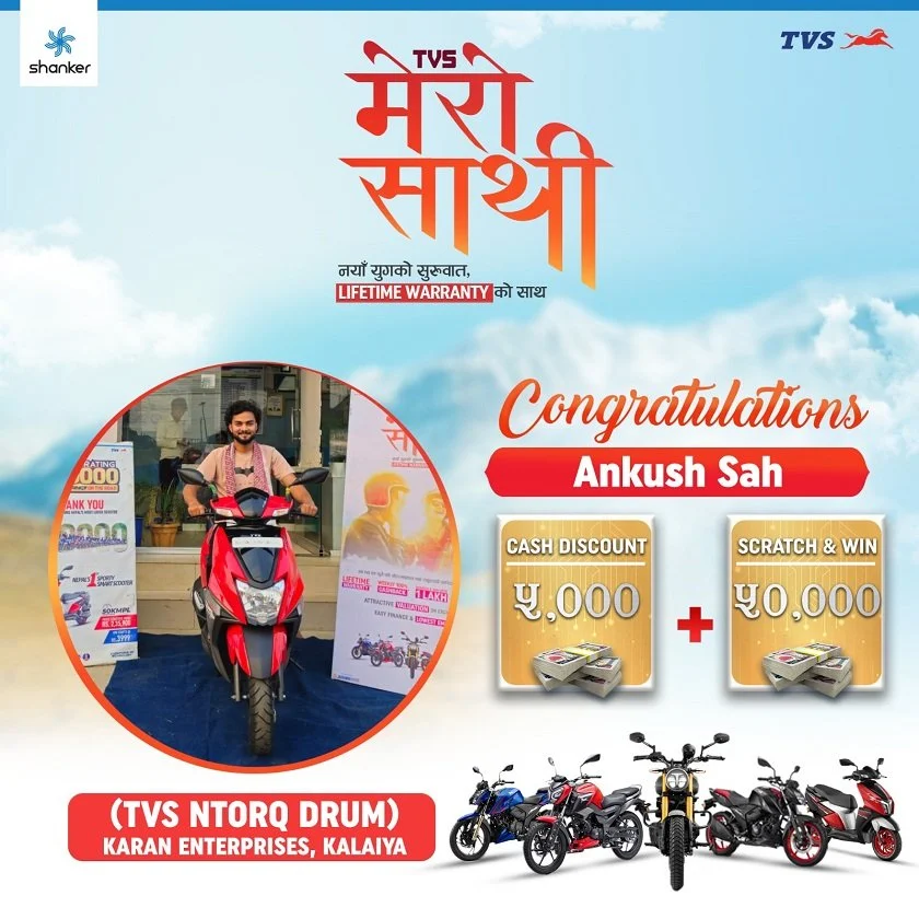 ‘टीभीएस मेरो साथी, लाइफटाइम वारेन्टी’ का विजेताले पाए पुरस्कार