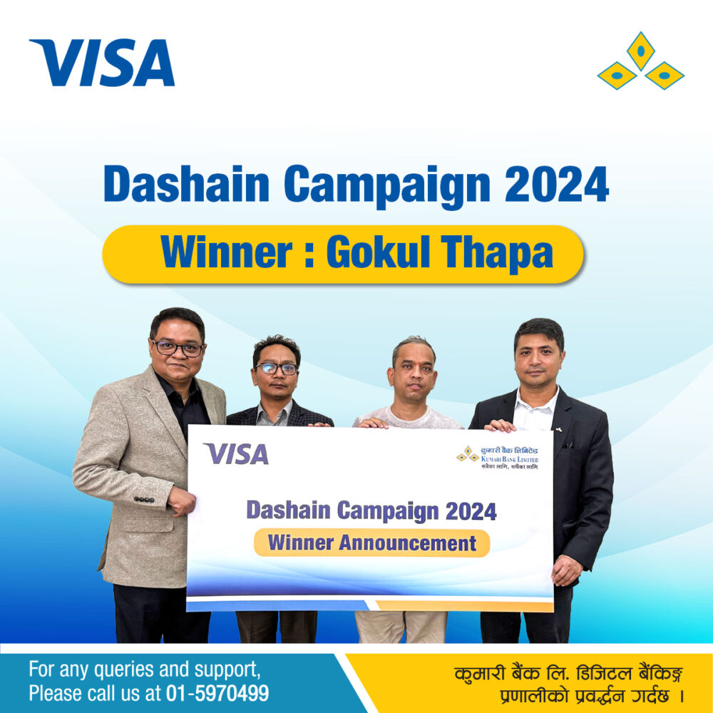 कुमारी बैंकका ग्राहक गोकुल थापा ‘दसैं क्याम्पियन’ भिसा अभियानमा विजेता घोषित