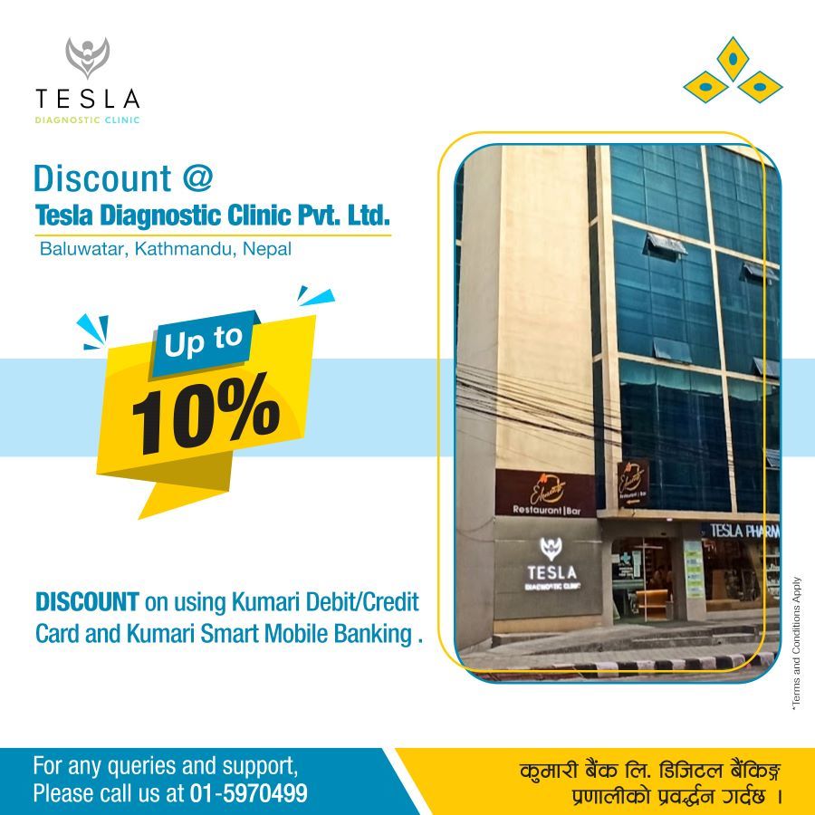 कुमारी बैंकका ग्राहकलाई टेस्ला डायग्नोस्टिक क्लिनिकमा १० प्रतिशत छुट
