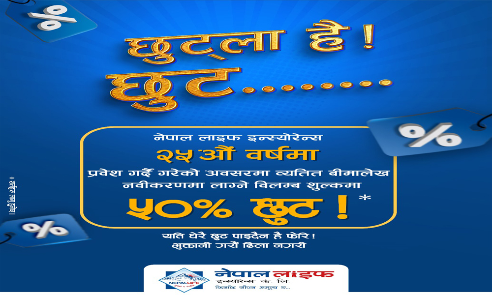 नेपाल लाइफद्वारा ‘छुट्ला है छुट’ योजना सार्वजनिक, विलम्ब शुल्कमा ५० प्रतिशत छुट