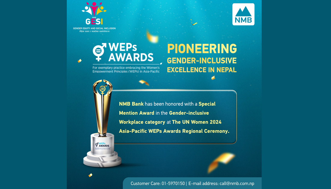 यूएन एसिया प्यासिफिक डब्ल्यूईपीएसअन्तर्गतको पुरस्कारबाट एनएमबी बैंक सम्मानित