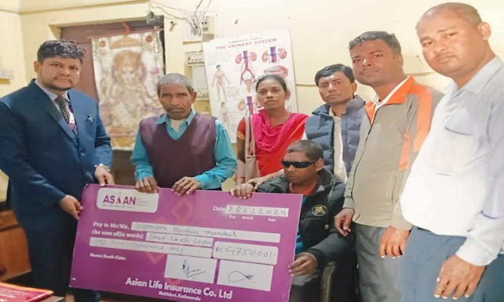 एशियन लाइफको विराटनगर शाखाले गर्यो घातक रोग दाबीको ४ लाख ७५ हजार रुपैयाँ भुक्तानी