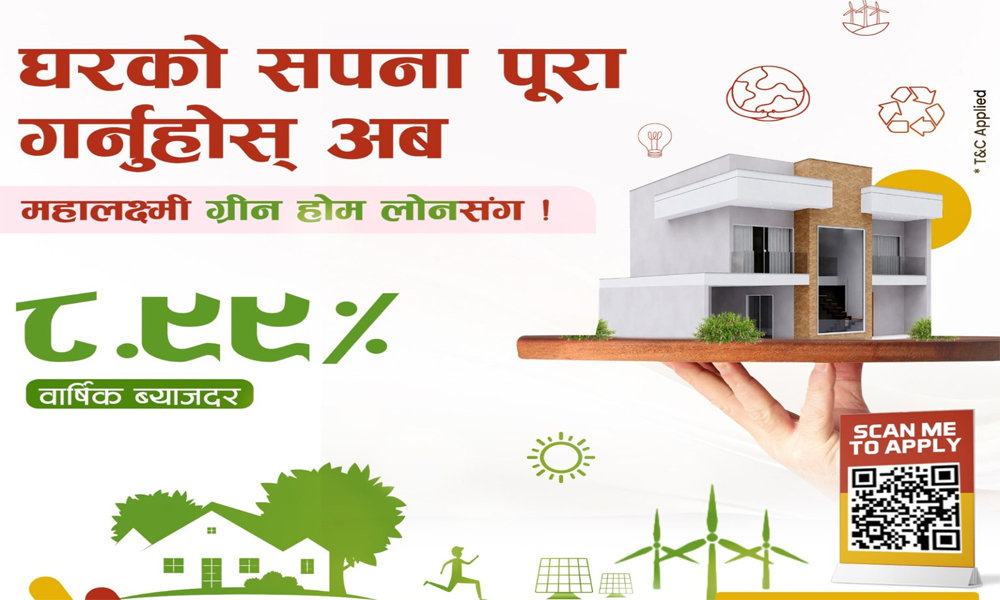 महालक्ष्मी विकास बैंकले ८.९९ प्रतिशत ब्याजदरमै हरित घर कर्जा दिने