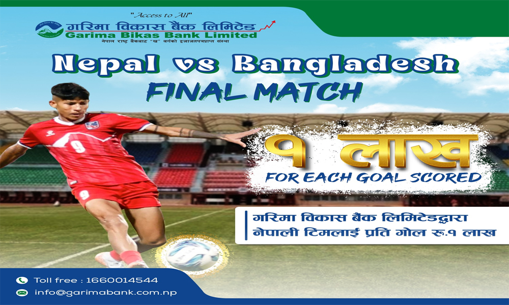 साफ महिला च्याम्पियनसिप : गरिमा विकास बैंकले फाइनमा खेलमा नेपालले गर्ने हरेक गोलको १ लाख दिने