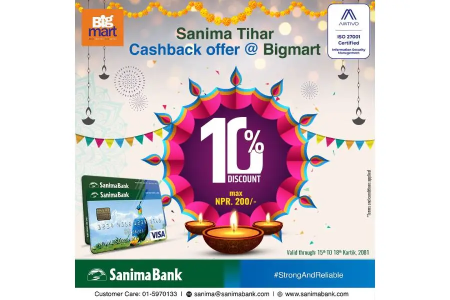 सानिमा बैंकका ग्राहकले बिग मार्टमा १० प्रतिशत छुट पाउने