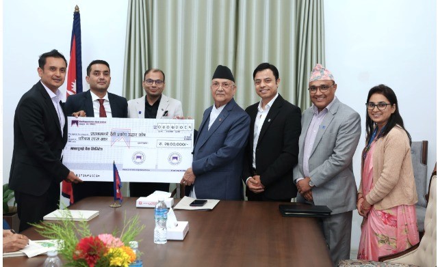 माछापुच्छ्रे बैंकद्वारा प्रधानमन्त्री दैवी प्रकोप उद्धार कोषमा २५ लाख सहयोग