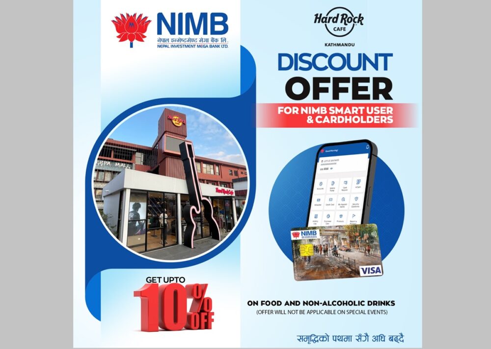 नेपाल इन्भेष्टमेण्ट मेगा बैंकका ग्राहकलाई ‘हार्ड रक क्याफे’मा १० प्रतिशत छुट