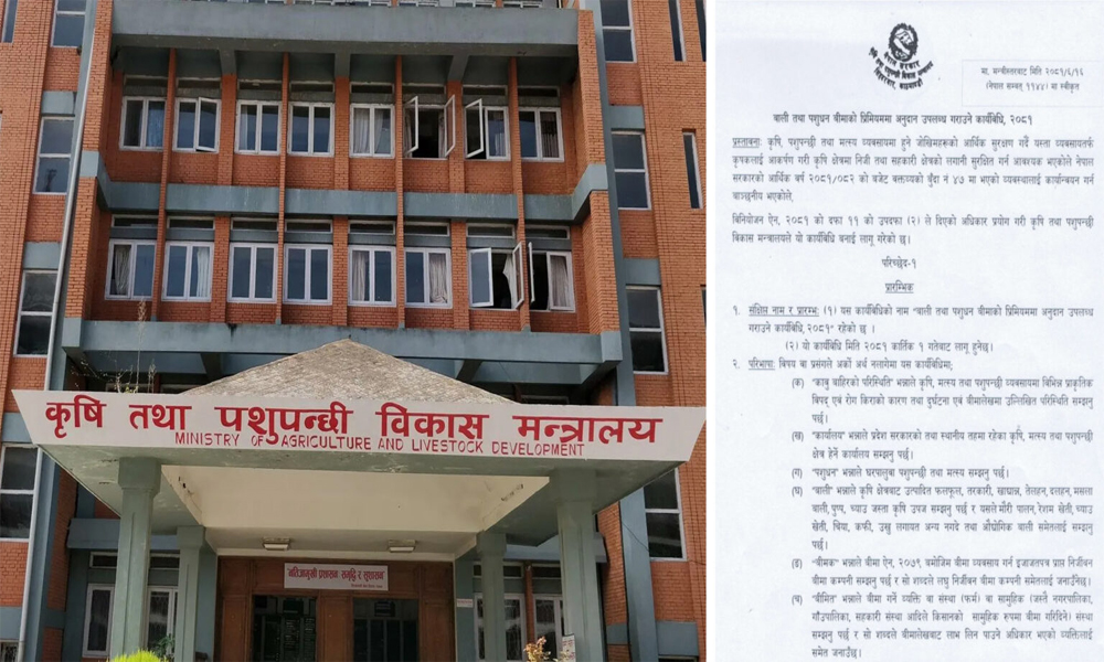 बाली तथा पशुपंक्षी बीमा शुल्क अनुदान सम्बन्धी कार्यविधि जारी, कात्तिक १ गतेदेखि लागु हुने