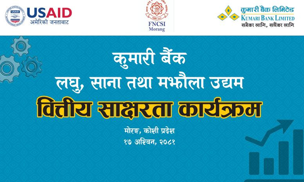 कुमारी बैंकको बिराटनगरमा उद्यमी प्रशिक्षण सम्पन्न