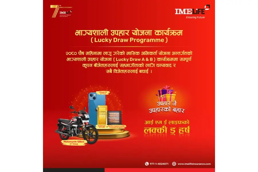 आईएमई लाइफको भाग्यशाली उपहार योजना सम्पन्न