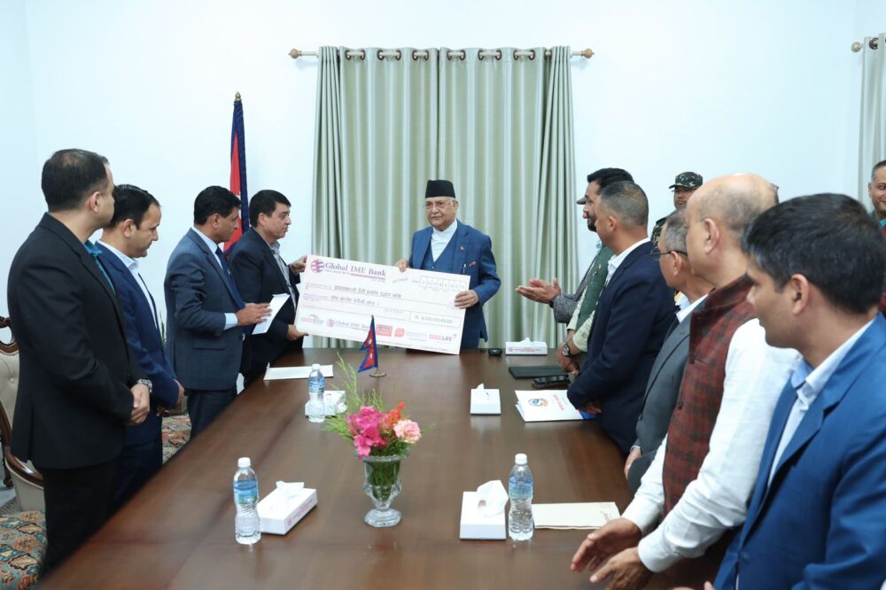 प्रधानमन्त्री दैवी प्रकोप उद्धार कोषमा ग्लोबल आइएमई बैंकसहित आइएमई ग्रुपको पाँच करोड सहयोग
