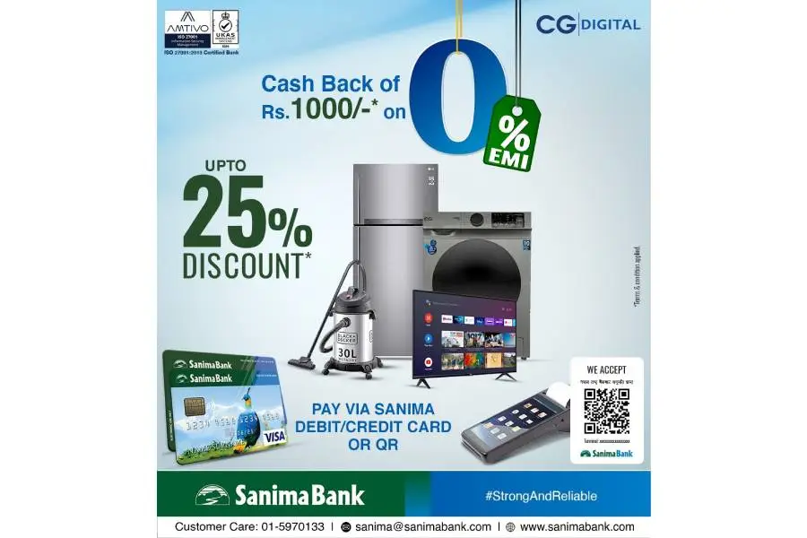 सीजीका सामान खरिद गर्दा सानिमा बैंकका ग्राहकलाई २५ प्रतिशत छुट