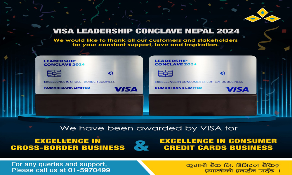 कुमारी बैंक भिसा अन्तराष्ट्रियद्वारा दुई विधामा सम्मानित