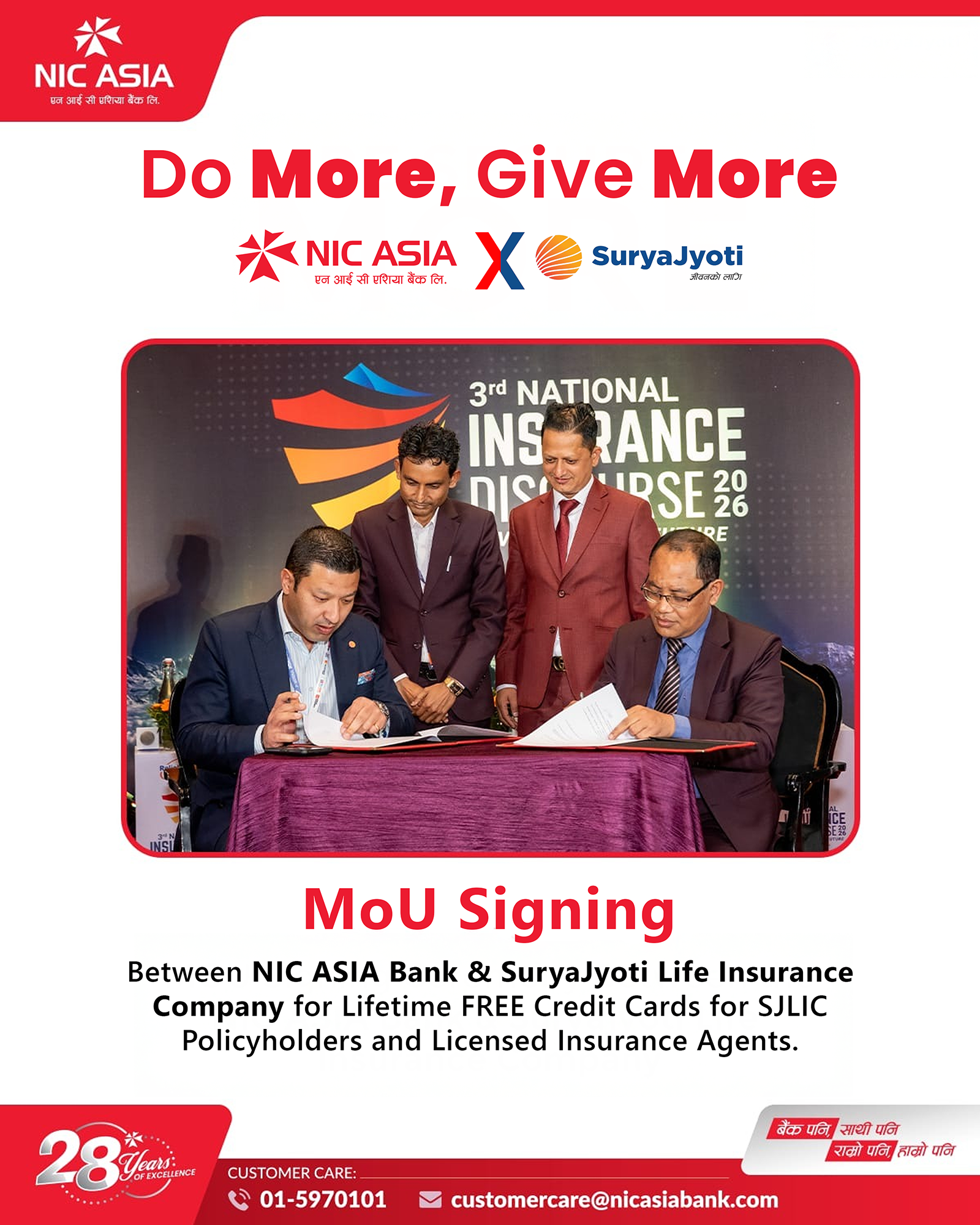 एनआईसी एशिया बैंक र सूर्यज्योति लाइफबीच सम्झौता: बीमित र अभिकर्तालाई लाइफटाइम निःशुल्क क्रेडिट कार्ड