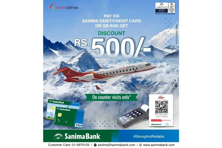 सानिमा बैंकका ग्राहकलाई श्री एयरलाइन्समा ५ सय छुट