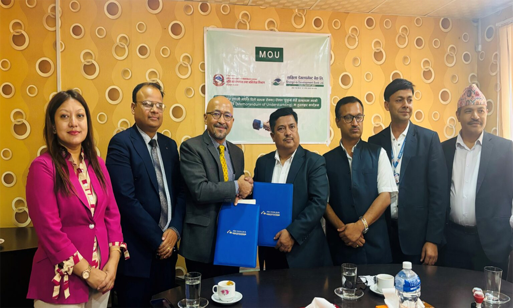 सांग्रिला डेभलपमेन्ट बैंक र भूमि व्यवस्थापन तथा अभिलेख विभागबीच घर जग्गा रोक्का/फुकुवा कार्य अनलाइनबाट गर्ने सम्झाता
