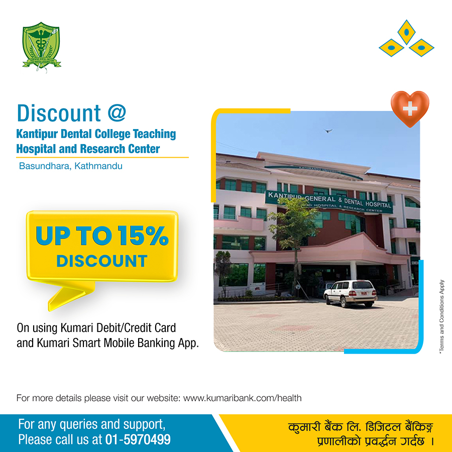 कुमारी बैंकका ग्राहकलाई कान्तिपुर डेन्टल कलेज टिचिङ अस्पतालमा १५ प्रतिशतसम्म छुट