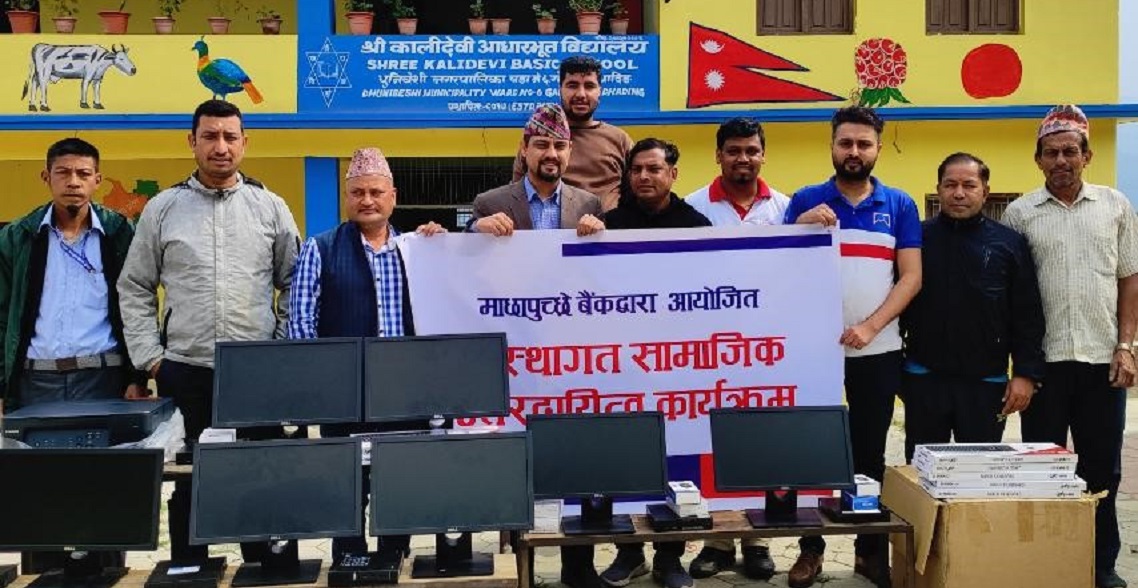 माछापुच्छ्रे बैंकद्वारा विद्यालयलाई ७ थान कम्प्युटर र कलर प्रिन्टर सहयोग