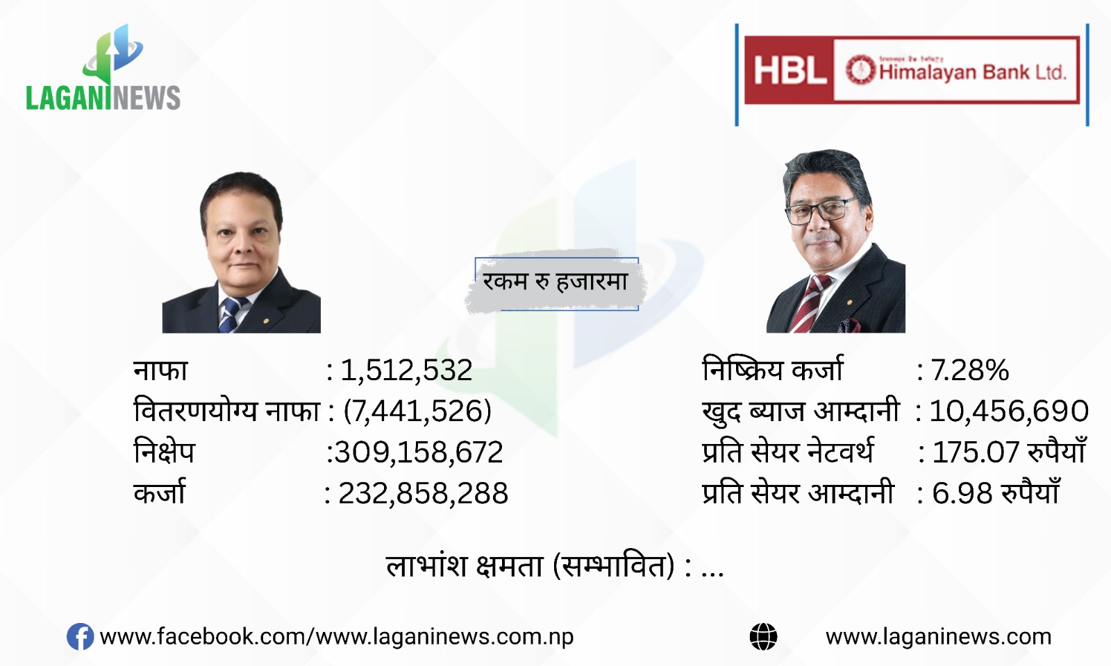 हिमालयन बैंकको नाफा २२.१४ प्रतिशतले बढ्यो, वितरणयोग्य नाफा ऋणात्मक