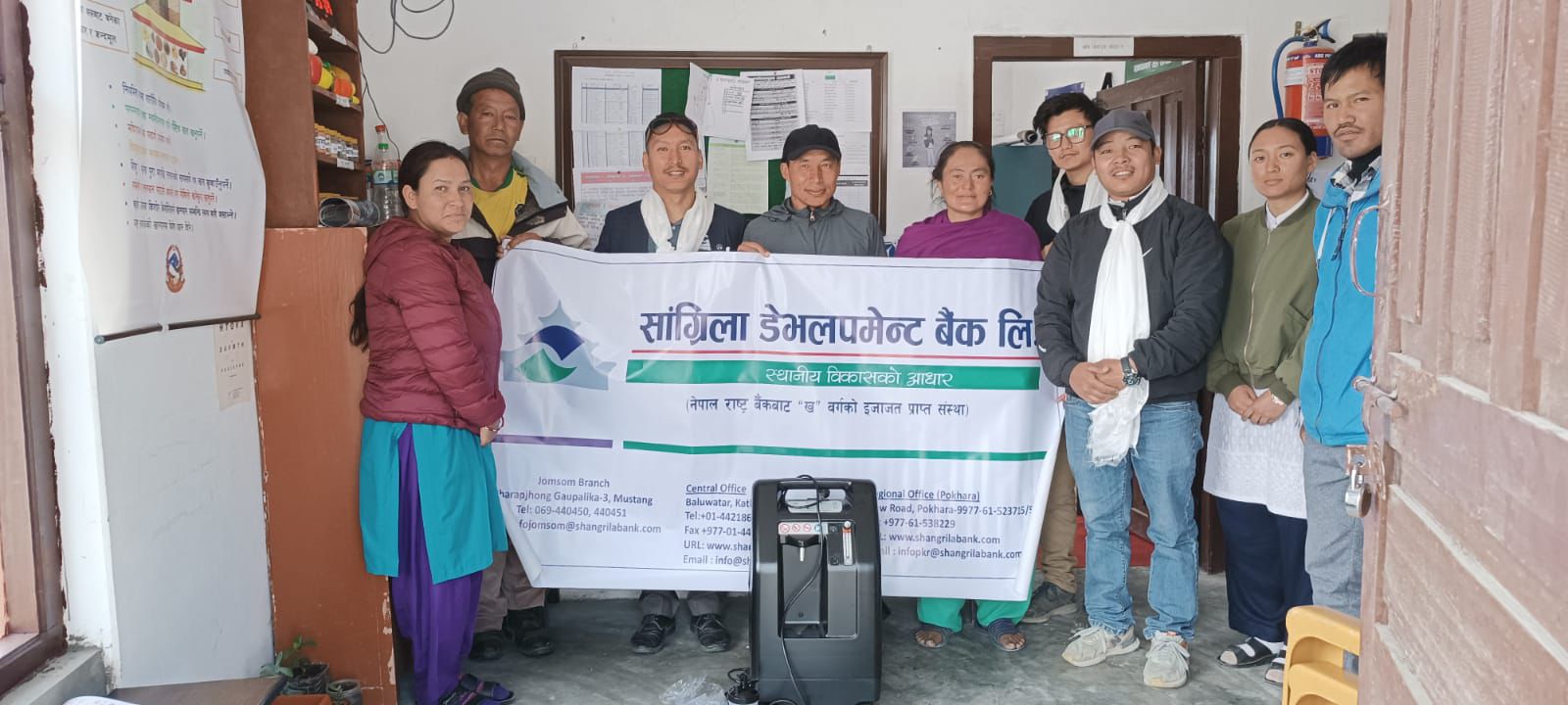 सांग्रिला डेभलपमेन्ट बैंकद्वारा मुस्ताङको स्वास्थ्य केन्द्रलाई अक्सिजन कन्सेन्ट्रेटर हस्तान्तरण