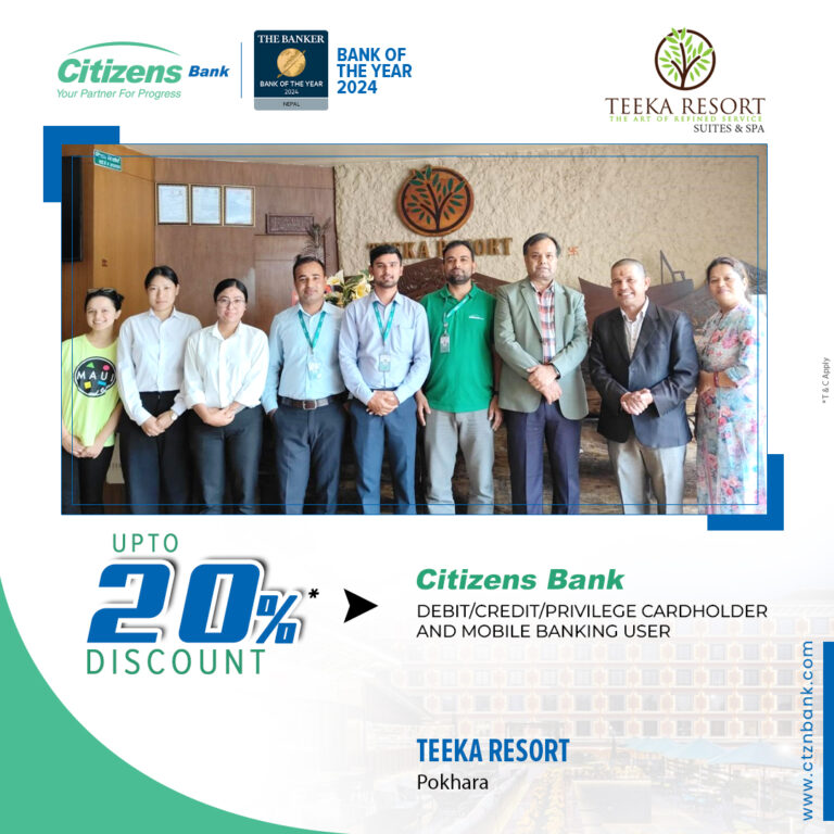 सिटिजन्स बैंकका ग्राहकलाई टीका रिसोर्टमा २० प्रतिशत छुट