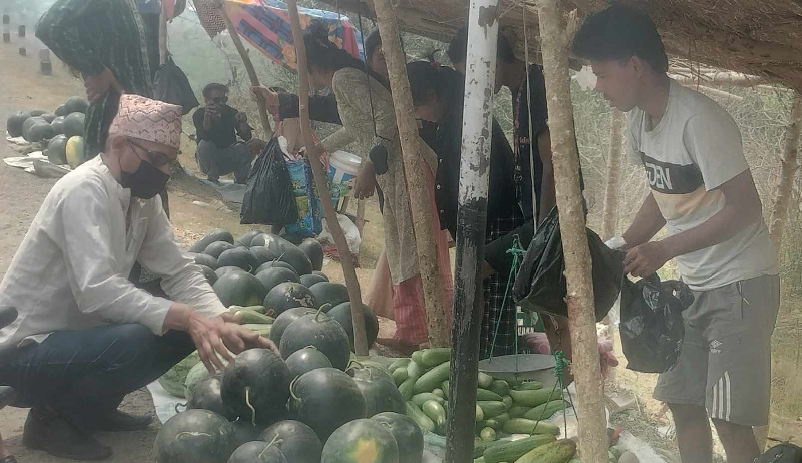 बगरमा तर्बुजा खेती, राजमार्गमा बिक्री
