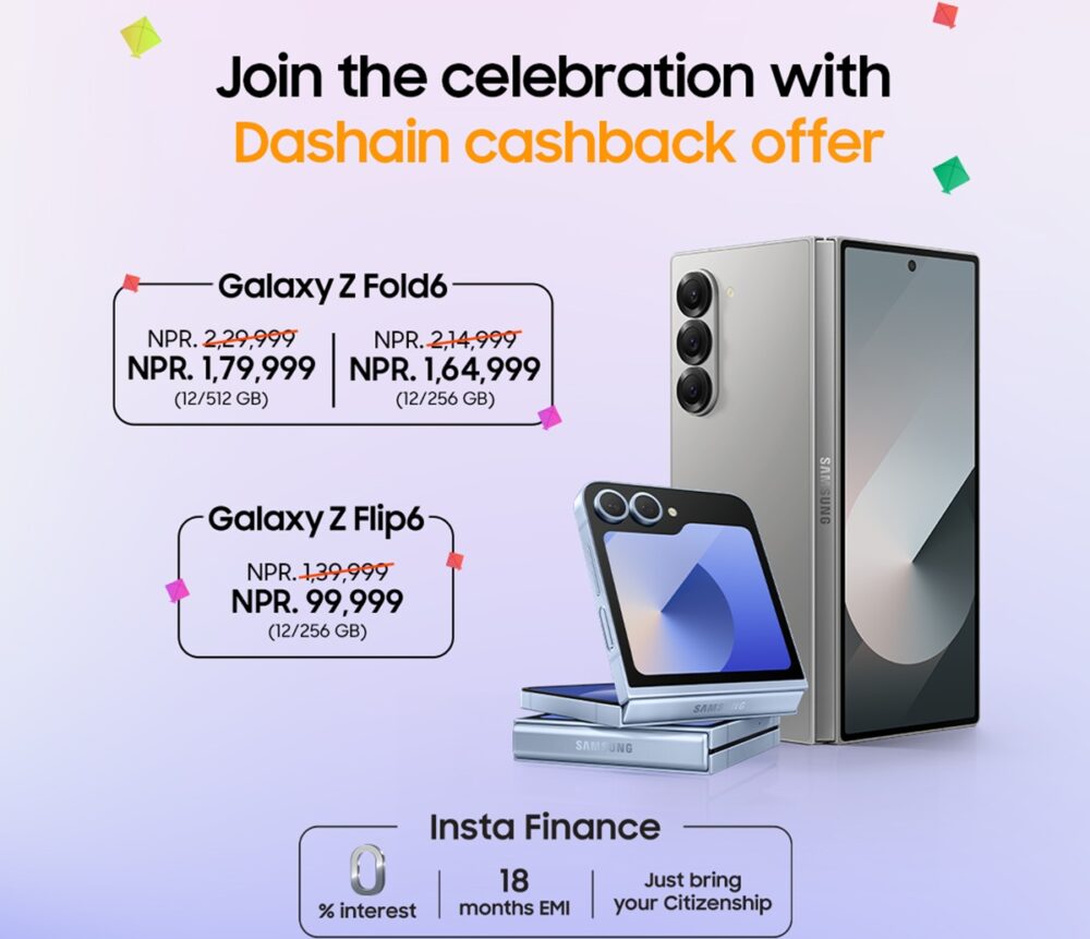 काठमाडौं । सामसङले दुई स्मार्टफोनको मूल्य घटाउने भएको छ। दसैं लक्षित गर्दै कम्पनीले ग्यालेक्सी जेड फोल्ड–६[...]