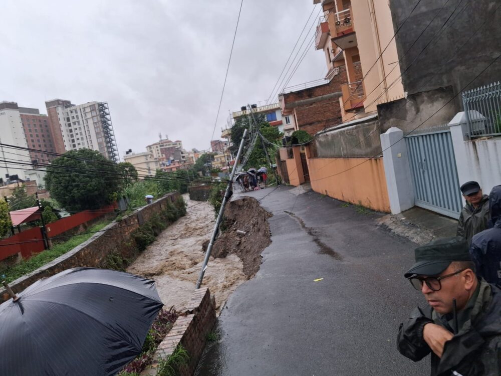 काठमाडौँ–१४ करखुसी खोलामा पहिरो, सडक भासियो