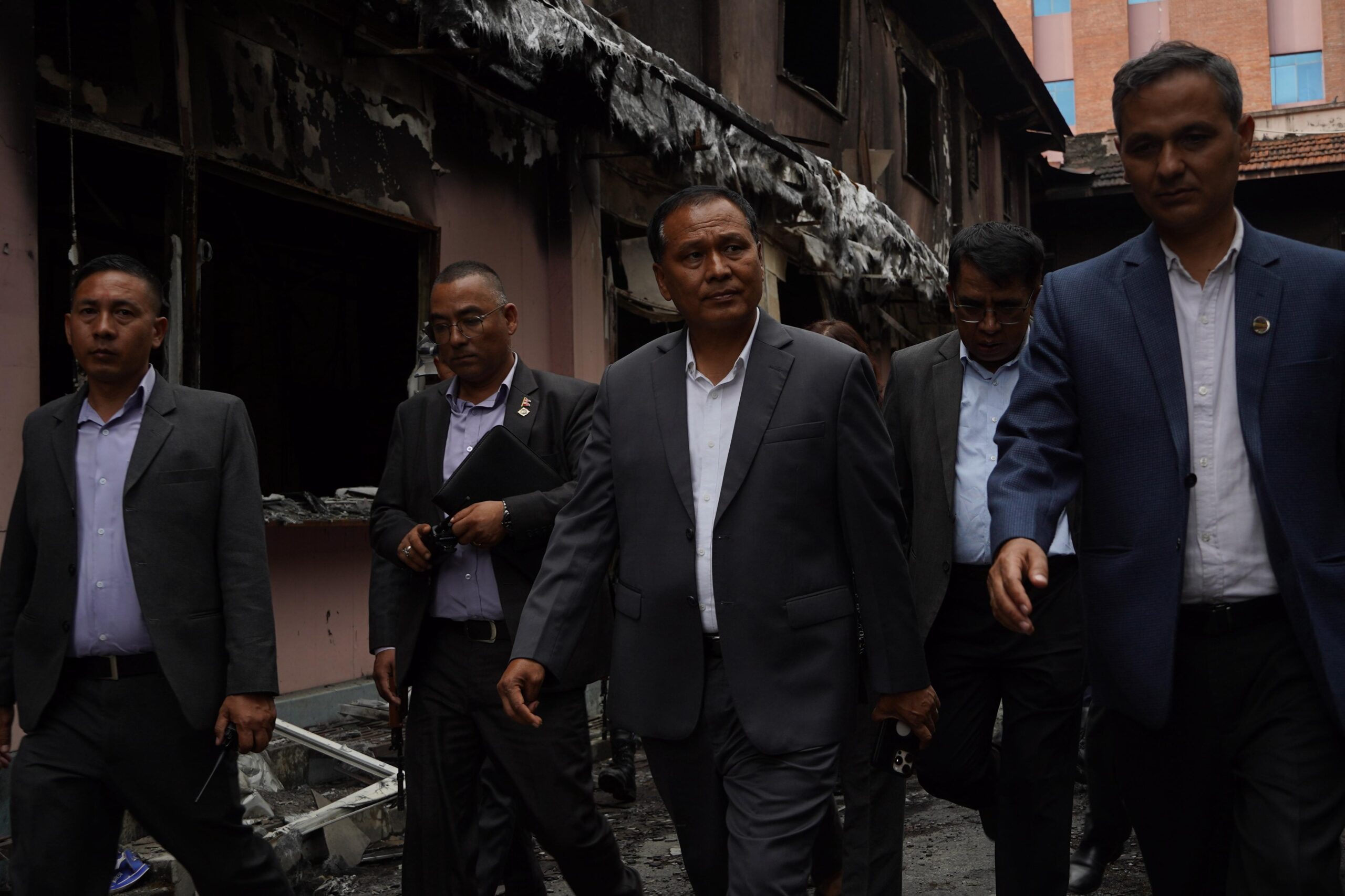 ऊर्जा घिसिङले गरे आगजनीबाट क्षतिग्रस्त भएको सर्वोच्च अदालत र संसद भवनको निरीक्षण (तस्बिरहरु)