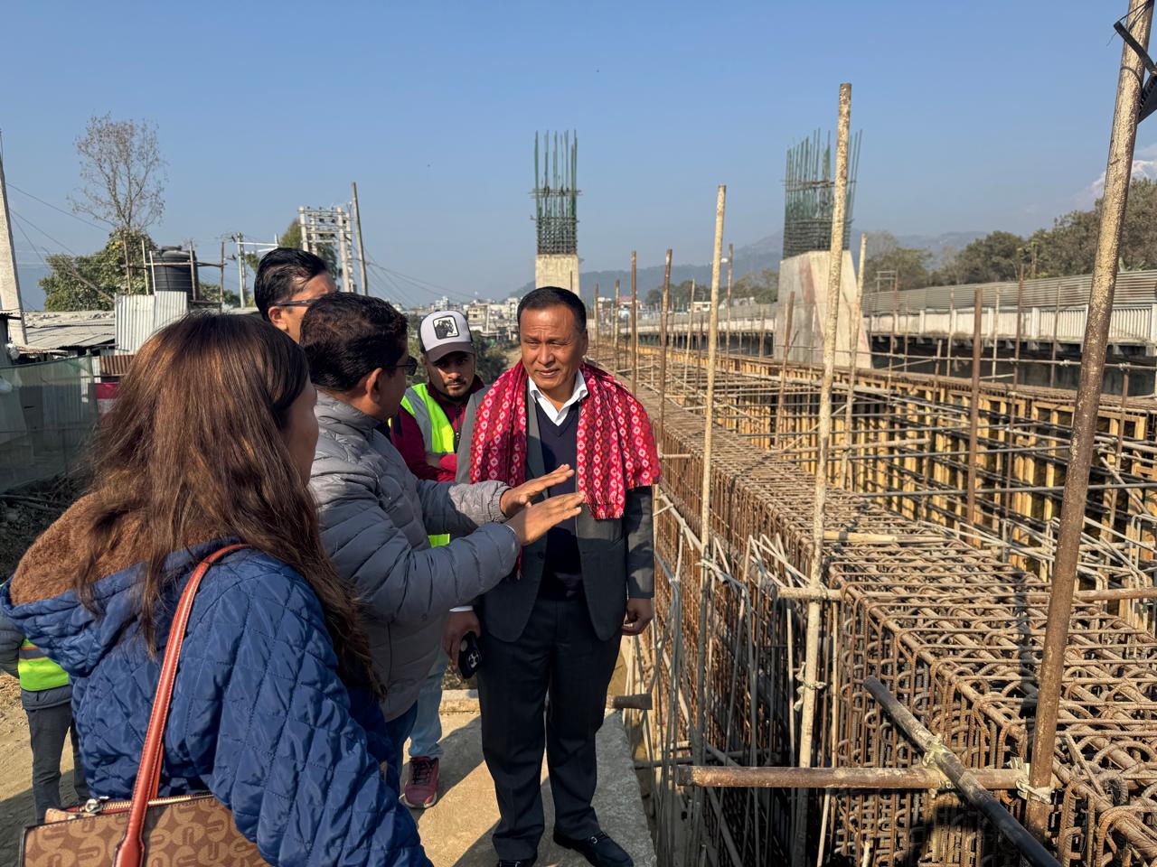 मन्त्री घिसिङद्वारा निर्माणाधिन सेती पुलको निरीक्षण