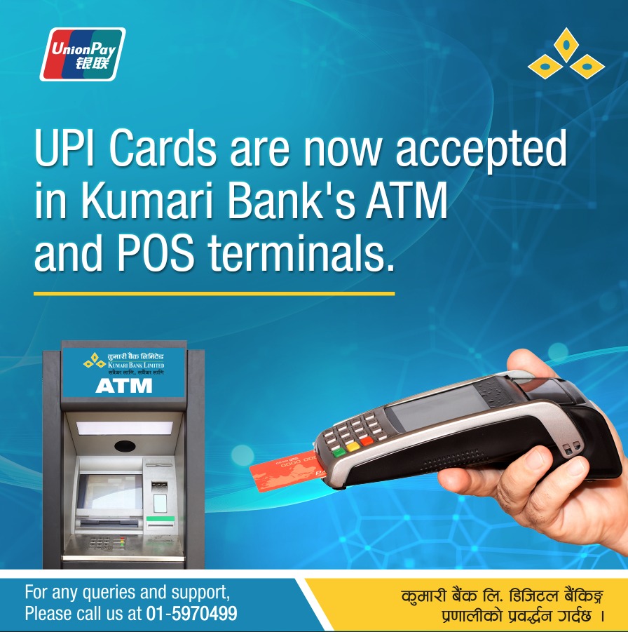कुमारी बैंकको एटीएम तथा पीओएसमा अब युनियनपे कार्ड प्रयोग गर्न सकिने