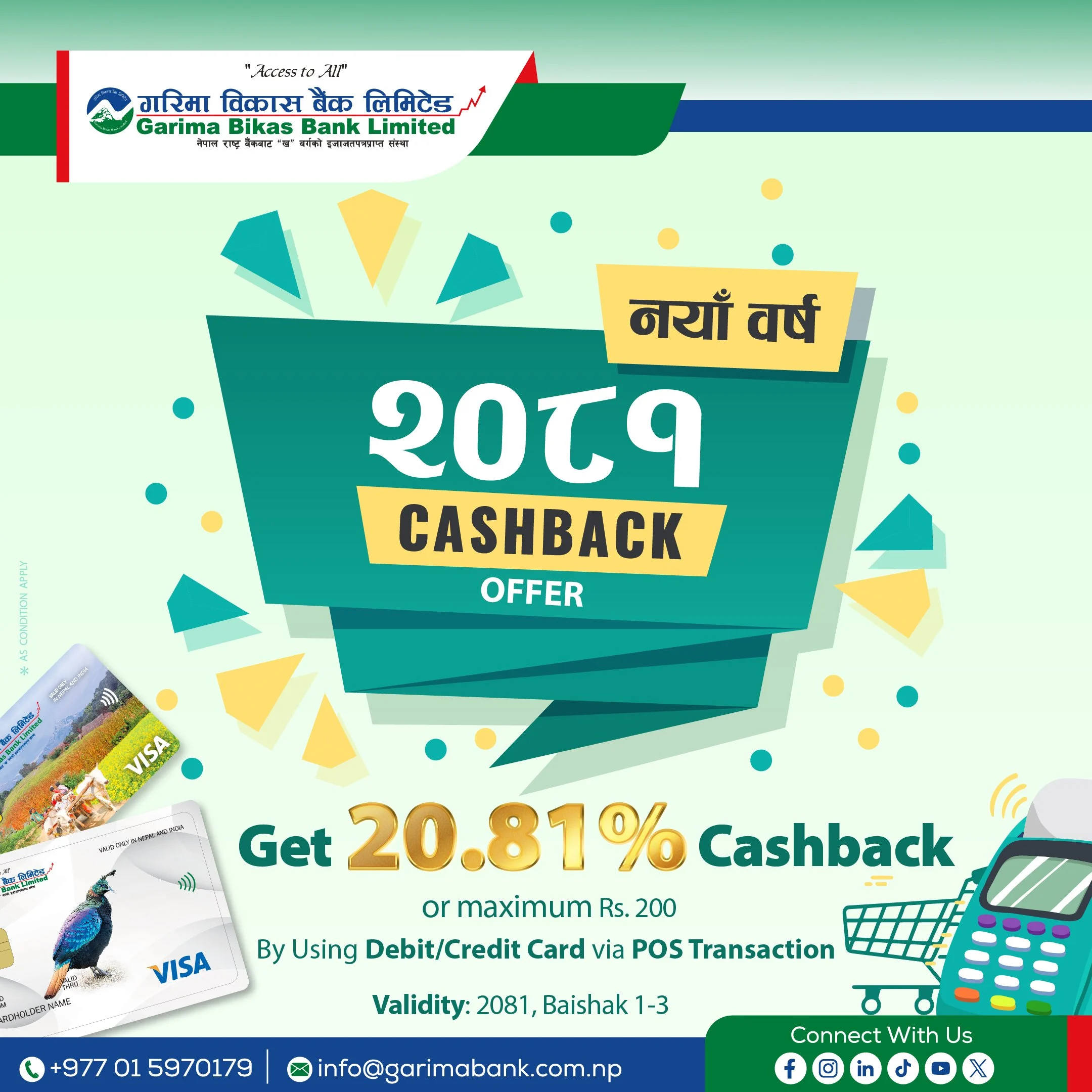 गरिमा विकास बैंकको डेबिट र क्रेडिट कार्डबाट भुक्तानी गर्दा २ सय क्यास ब्याक